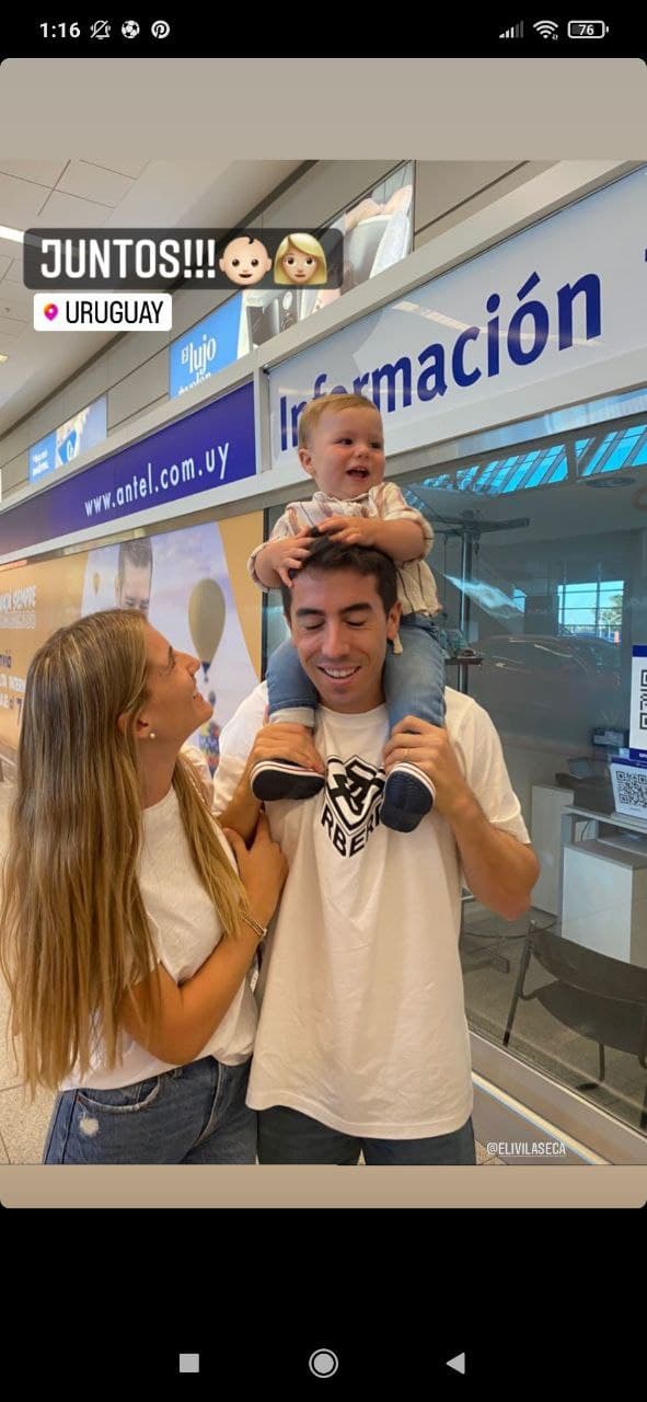 Полузащитник "Динамо" Карлос де Пена прилетел в Уругвай, где его сразу встретили жена с ребенком.