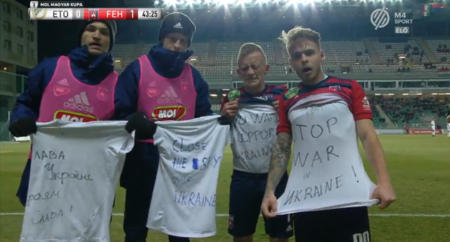 Именно Иван открыл счет перед отдыхом. Петряк мощным ударом с линии штрафной попал в девятку ворот Дьера (видео по ссылке). Все четверо украинцев собрались праздновать, показывая лозунги в поддержку Украины и против войны.