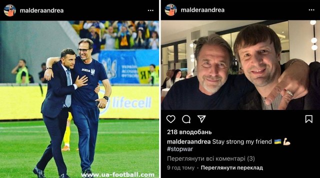 Малдера решил публично поддержать своих бывших коллег, с которыми проработал 5 лет бок о бок. "Держитесь, мои друзья", – написал итальянец в своем Instagram и добавил два фото с Андреем Шевченко и Александром Шовковским.