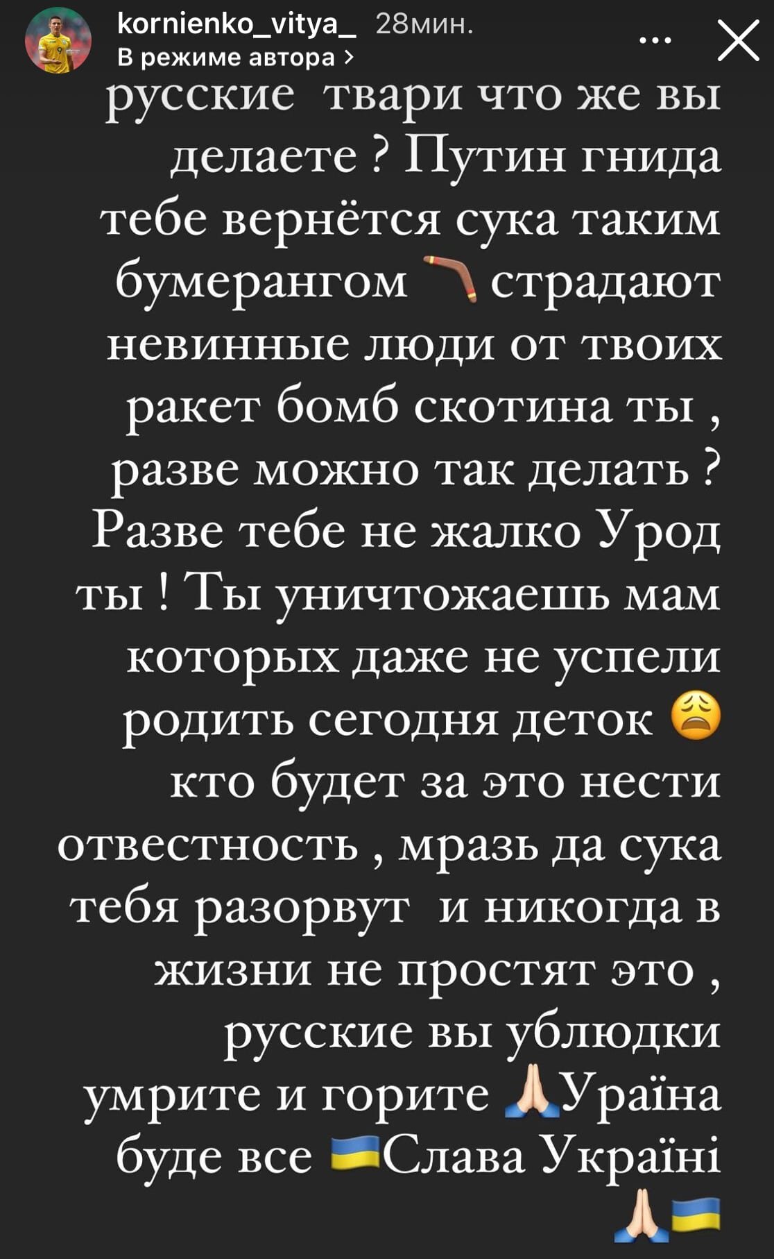 Защитник «Шахтера» Виктор Корниенко в своем Instagram прокомментировал вторжение России в Украину.