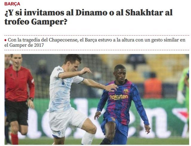 В авторской колонке на Mundo Deportivo журналист призвал Барселону сделать красивый шаг и пригласить Динамо, Шахтер или сборную Украины на Кубок Гампера, который состоится в августе.