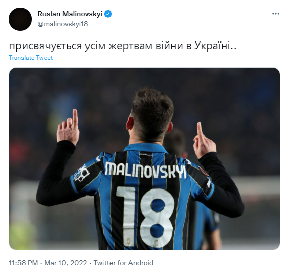 Малиновский про гол и асисты в матче с "Байером": "Посвящается всем жертвам войны в Украине"