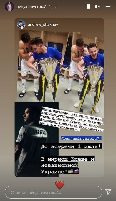 Ответив на сторис в Instagram Андрея Шахова-младшего, словенский футболист выступил с кратким обращением.