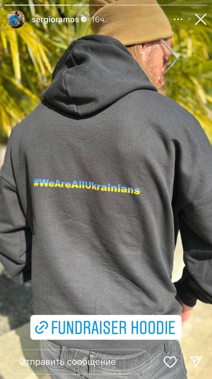 35-летний испанец в своем Instagram призвал купить худи с изображением голубей на руке (спереди) и надписью "Все мы – украинцы" на спине. Стоимость кофты - 100 евро (за шт.), а вся сумма от продажи пойдет на помощь украинцам, пострадавшим от российского вторжения.