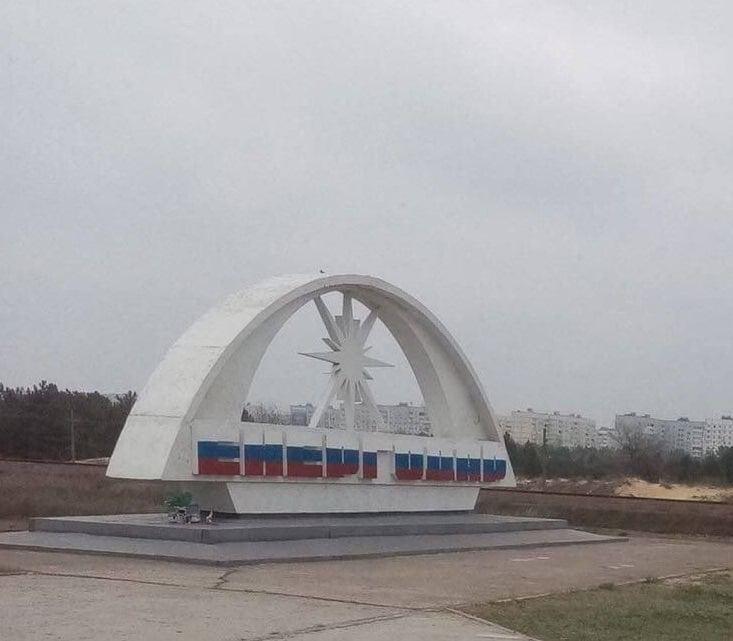 Как сообщает телеграм-канал NEXTA, в оккупированном Энергодаре рашисты перекрасили название города на стеле в цвета своего флага.