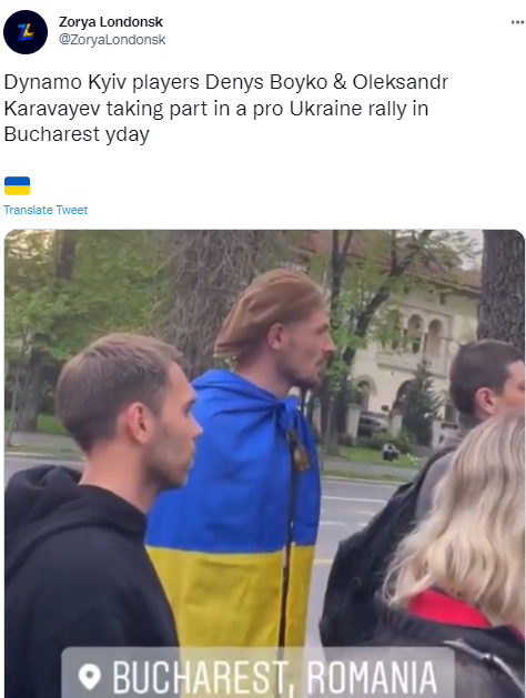 Некоторые футболисты киевского "Динамо" присутствовали на митинге против российской агрессии на территории Украины, состоявшемся в Бухаресте.