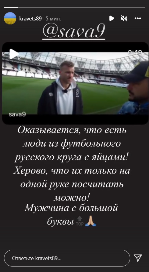 - Оказывается, что есть люди из футбольного русского круга с яйцами! Хе***о, что их только на одной руке посчитать можно! Мужчина с большой буквы, - написал Кравец.