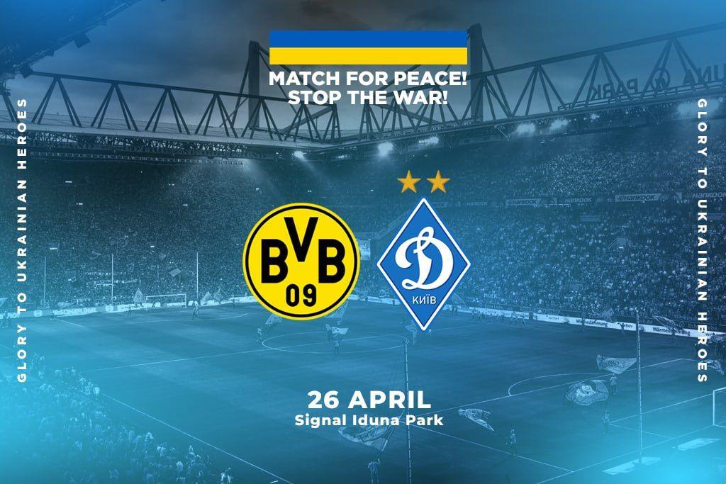 Во вторник, 26 апреля, дортмундская «Боруссия» примет киевское «Динамо» в благотворительном матче в рамках европейского турне под лозунгом «Match for Peace! Stop the War!» («Матч за Мир! Остановим Войну!»).