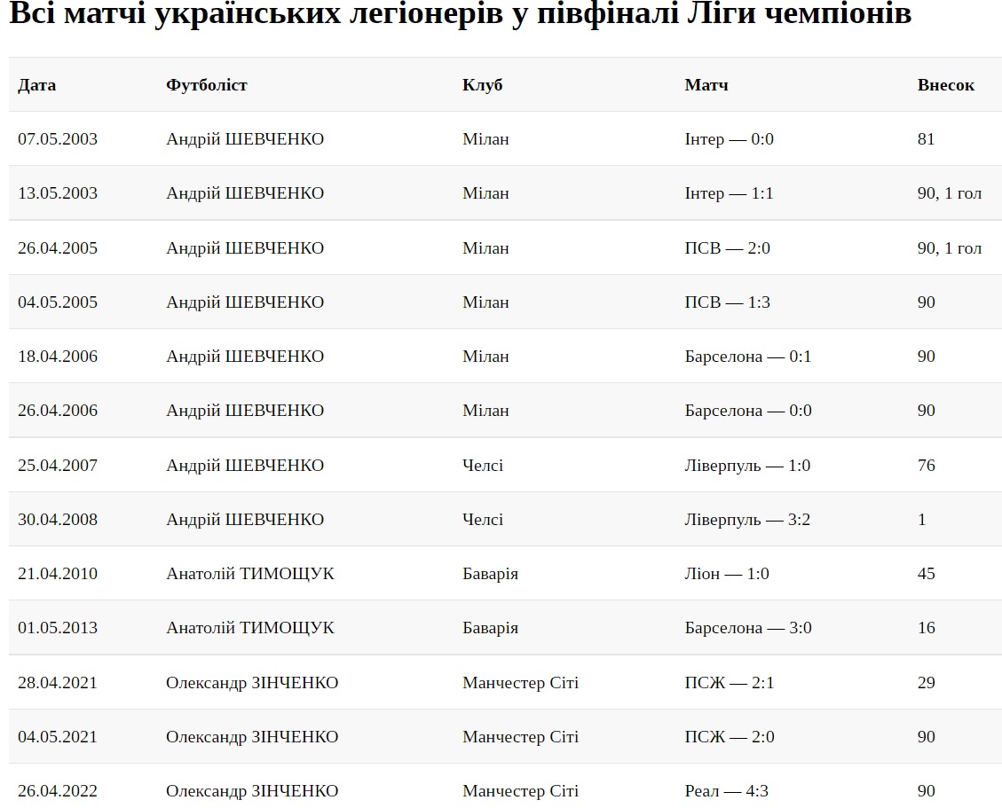 Но Зинченко еще есть куда расти, чтобы полностью повторить достижения Шевченко. Ведь звездный форвард четыре (!) сезона подряд играл в полуфинале ЛЧ (2005-2008).