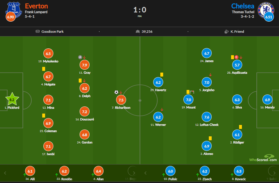 Лучшим игроком матча голкипер Эвертона Джордан Пикфорд. Он получил от аналитиков 8,5. Худшим стал капитан Челси Сезар Аспиликуэта - 5,7.