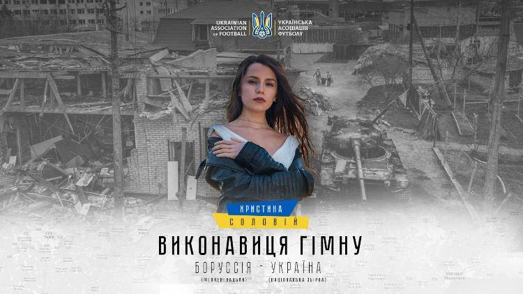 Гимн Украины перед матчем будет исполнять вживую певица из Дрогобыча, лауреат многочисленных международных конкурсов, первая артистка, чьим продюсером стал Святослав Вакарчук — Кристина Соловой.