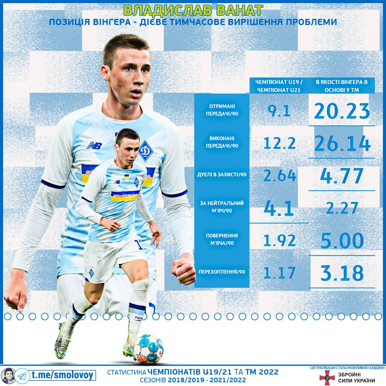 Тож з Владиславом ми маємо можливість сподіватись на щасливий кінець, бо і якості сильні є, і ставлення діда до футболу більш мудре, ніж в Potato Pepa. Приклади Шапаренка, Буяльського, Забарного чи Сироти мають надихати. Поки все йде до того, що Ванат може бути корисним набагато більше, ніж ті півтори хвилини до яких його привчили, - написав Смоловий у своєму телеграм-каналі.