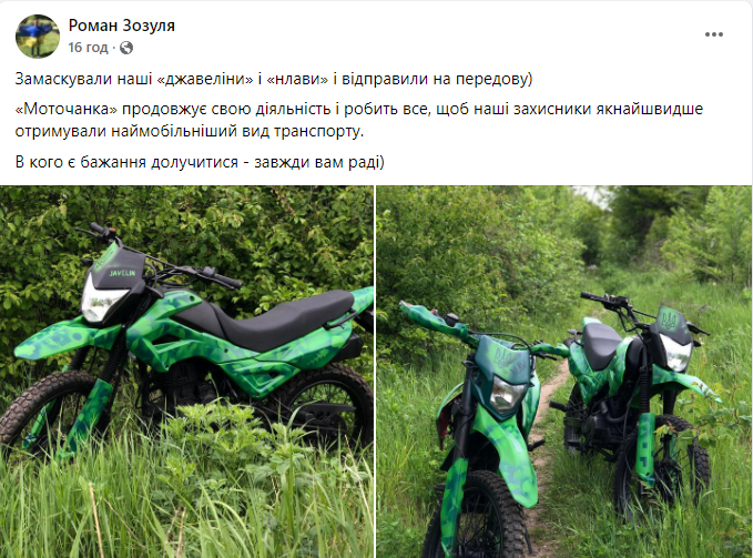 Роман Зозуля отправил мотоциклы на нужды ВСУ