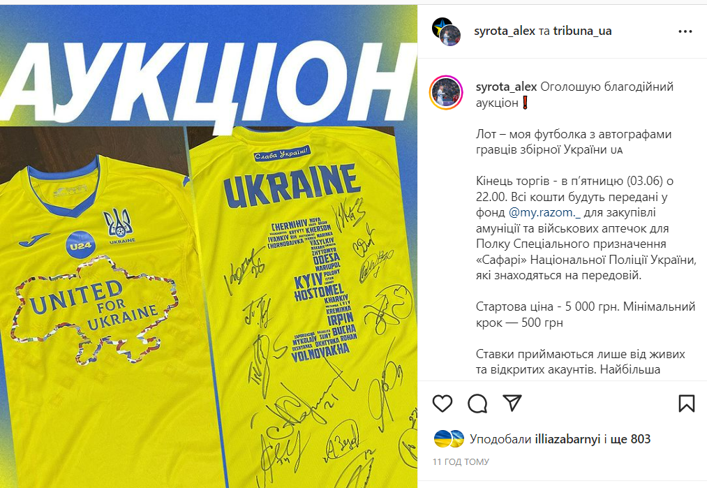 Защитник киевского Динамо и сборной Украины Александр Сирота организовал благотворительный аукцион для помощи ВСУ.