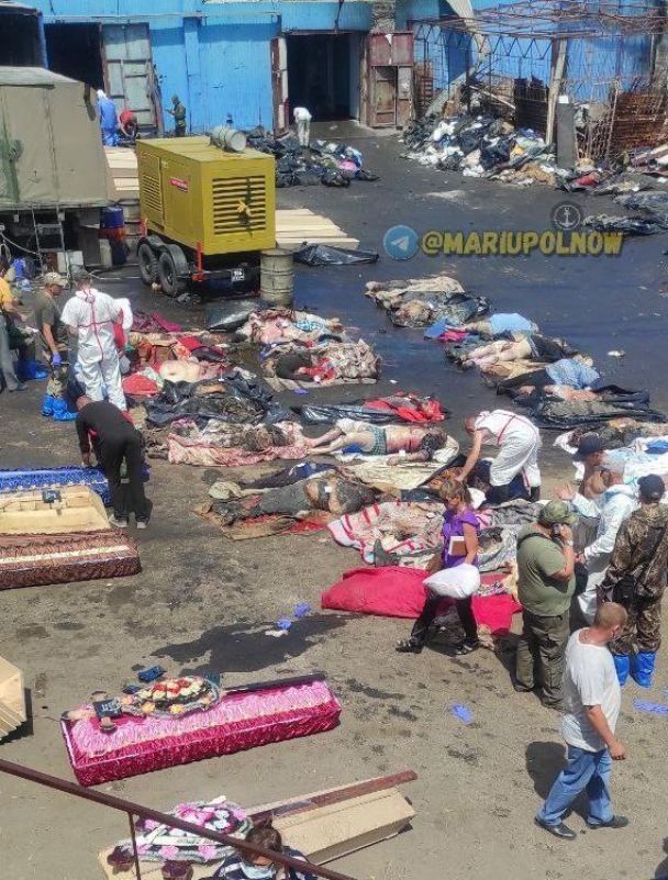 В Мариуполе тела погибших людей лежат под открытым небом на асфальте в жару (18+)