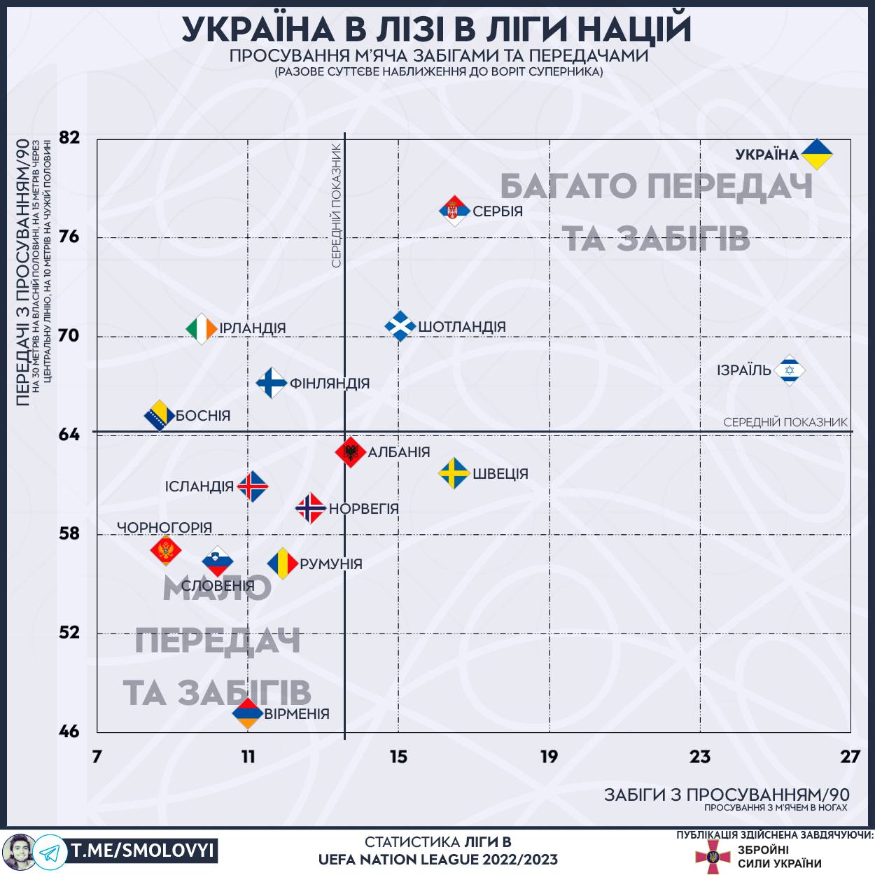 Отож, як ви можете бачити на першому графіку, то збірна України просто взірець для інших з просування м’яча. Ми монстри Ліги Націй В: