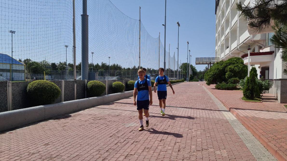 Динамовцы выходят на тренировку на клубной базе в Вите-Литовской