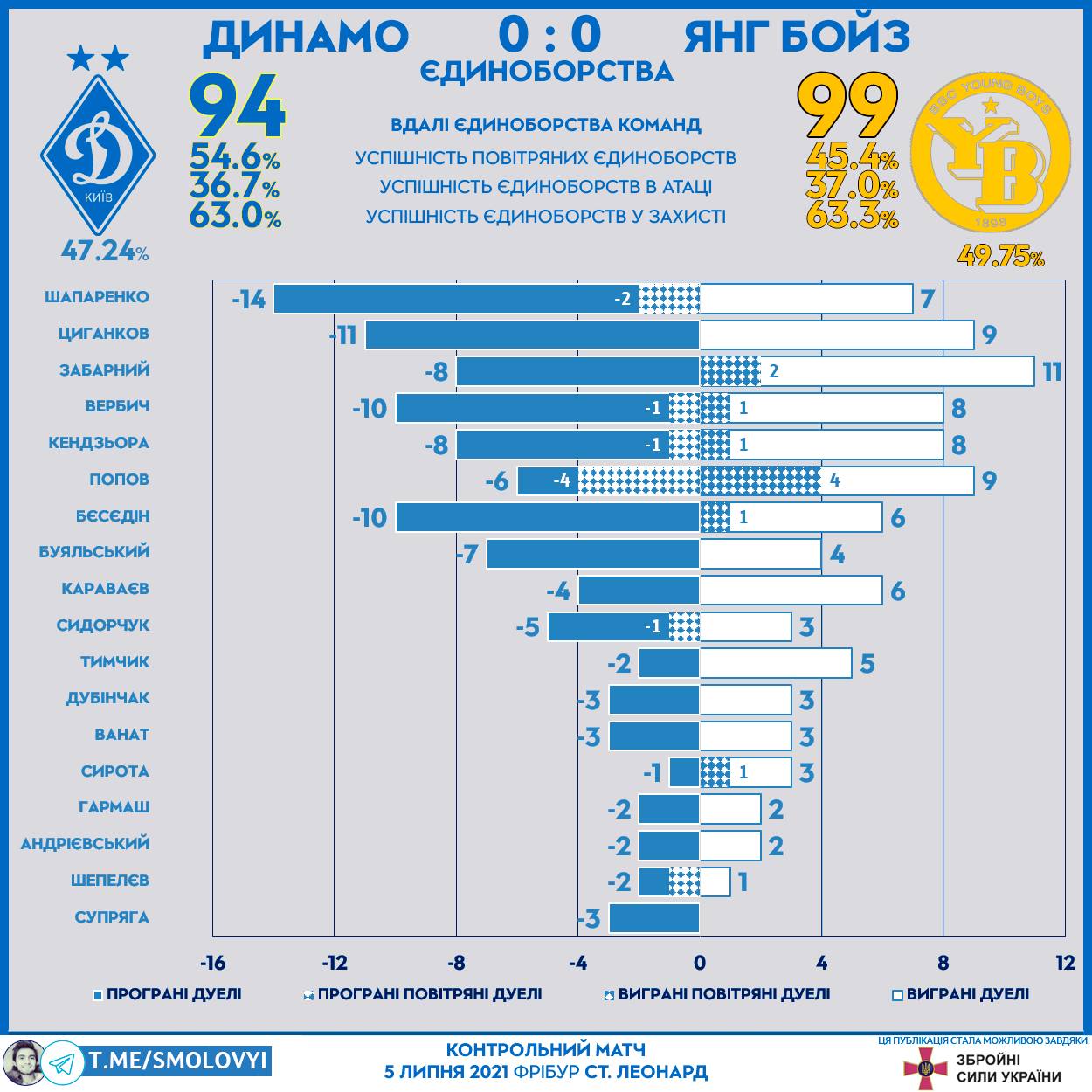 Резерв/діти з 72.73% виграних дуелей в захисті переважають більш досвідчених партнерів - 62.96% (проти Янг Бойз).