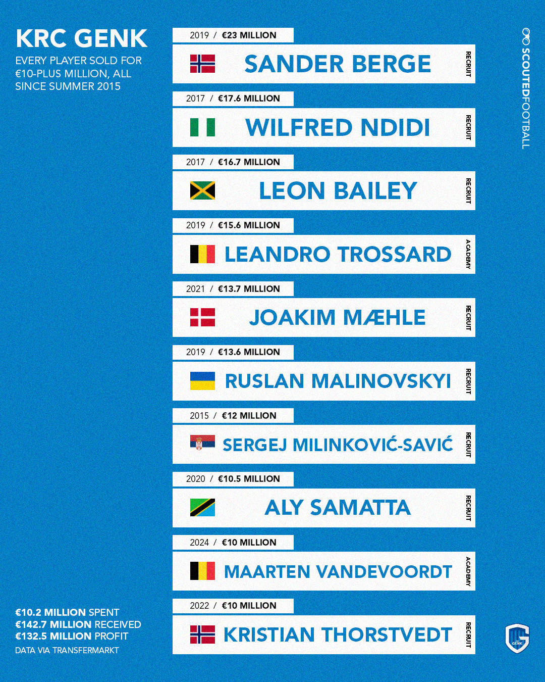 Страница Scouted Football в Твиттере выделила бельгийский "Генк" как один из лучших примеров среди клубов, умеющих выгодно покупать футболистов, а потом перепродавать их уже за большую сумму.