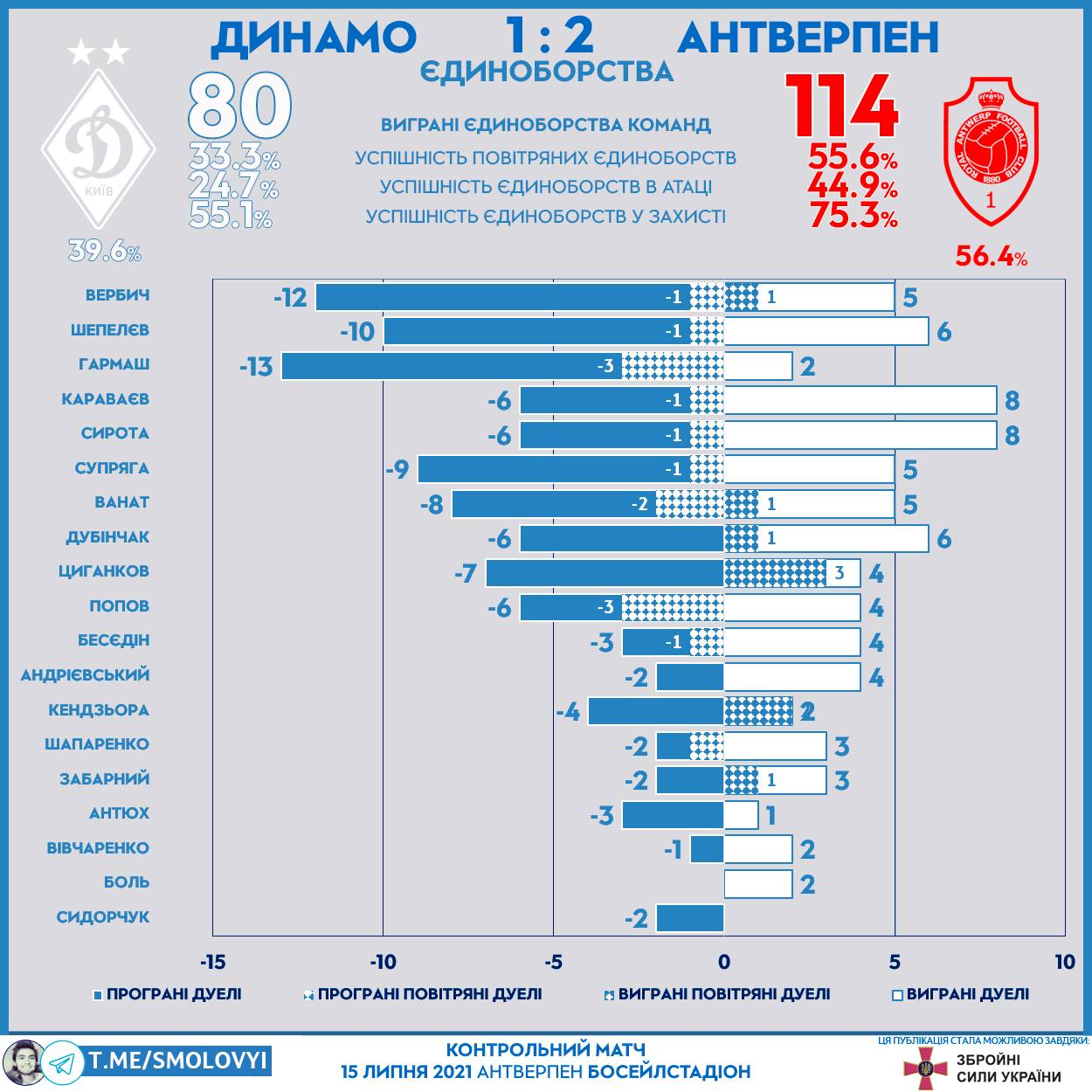 Найбільш страшна картина в атаці, де затравлений усіма Супряга ледь не приклад для наслідування: виграв 4 з 7 дуелей (57%).
