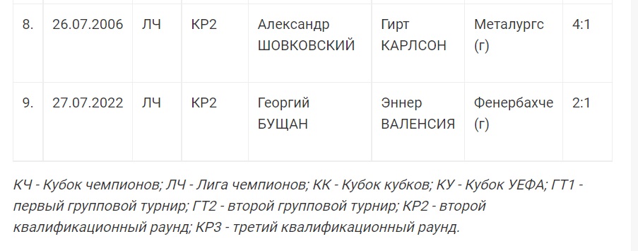 Георгий Бущан, отразив удар с «точки» эквадорского форварда «Фенербахче» Эннера Валенсии, стал шестым вратарем «Динамо», сумевшим парировавшим пенальти в еврокубках.