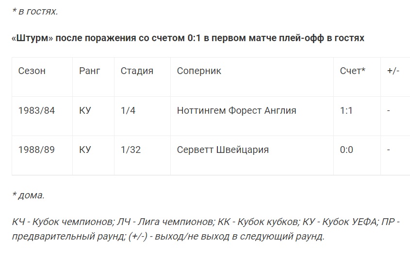 Что касается «Штурма», то австрийцы, ранее трижды уступив хозяевам с разницей в один мяч, в том числе дважды со счетом 0:1, ни разу не сумели изменить ситуацию в свою пользу в родных стенах.