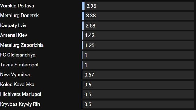 Третьим по успешности от Украины является Днепр – 19,23 балла. К сожалению, легендарный клуб уже не улучшит свои позиции. Металлист завоевал для нас 11,83 балла, Черноморец – 8,58, а Заря – 5,46. Свою лепту внесли Ворскла (3,95), донецкий Металлург (3,38) и Карпаты (2,58).