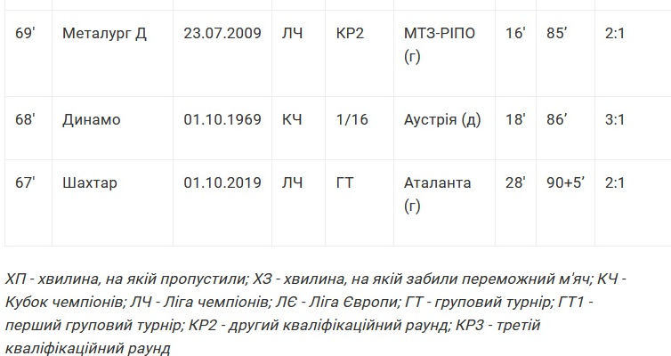 Таким чином, щоб вийти вперед, їм знадобилося 85 хвилин. Колишній рекорд, встановлений 15 років тому «Шахтарем», до речі, також у зустрічі з командою з Австрії - «Зальцбургом», динамівці перевершили на 11 хвилин.