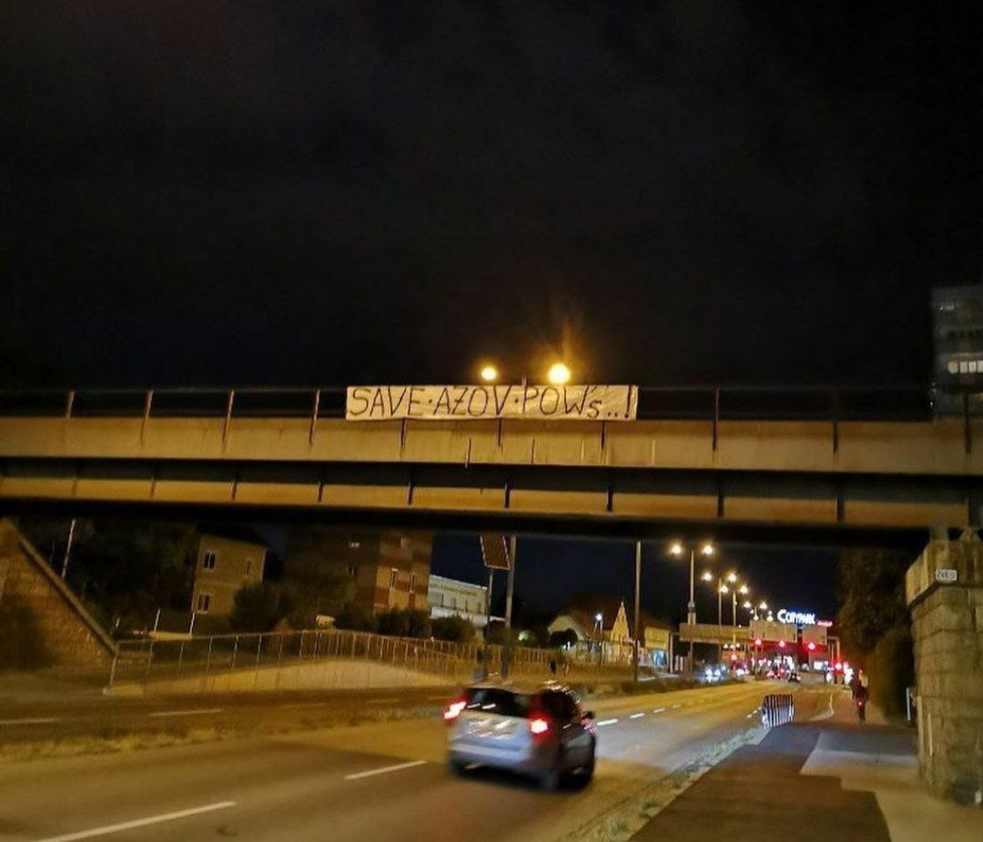 Позже один из этих баннеров был размещен над одной из автомагистралей города.