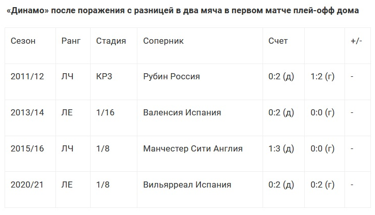 Ранее киевляне четырежды уступали соперникам с разницей в первом матче плей-офф на своем поле. И ни разу изменить ситуацию в свою пользу в ответной игре киевлянам так и не удалось.