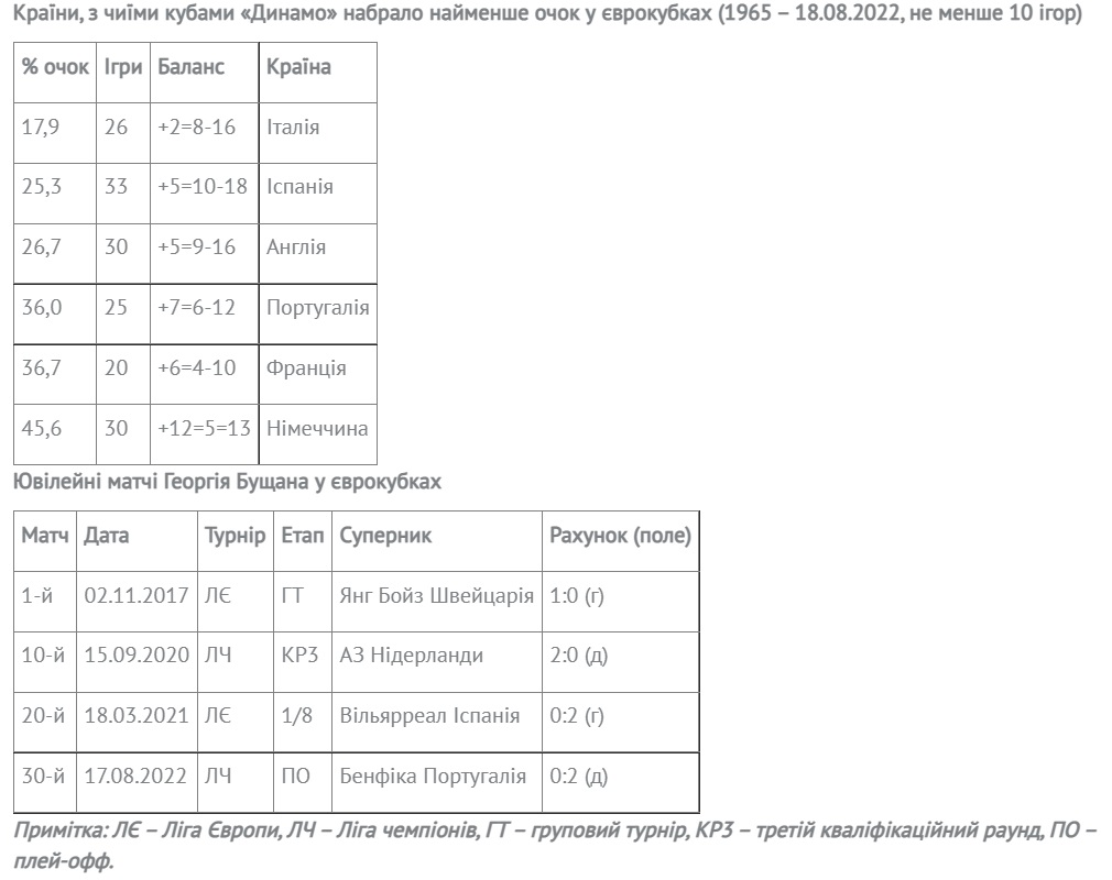 В общей сложности "Динамо" провело юбилейный, 25-й, еврокубковый матч с клубами Португалии: 7 побед, 6 ничьих и 12 поражений, разница мячей 23-33. Динамовцы в общей сложности набрали 36 процентов "португальских" очков.