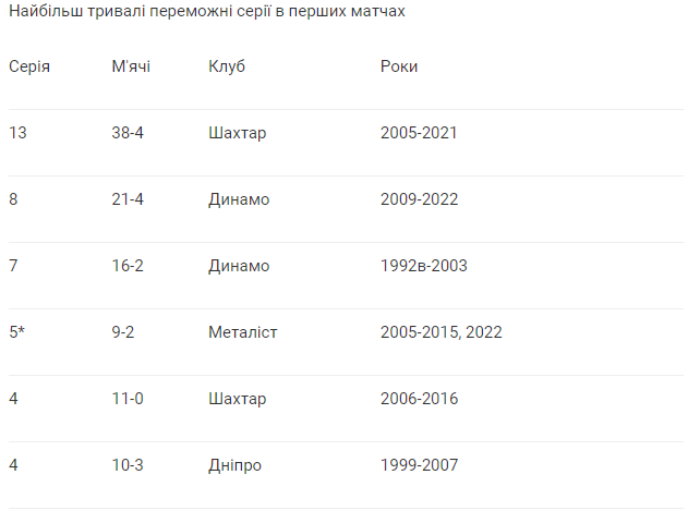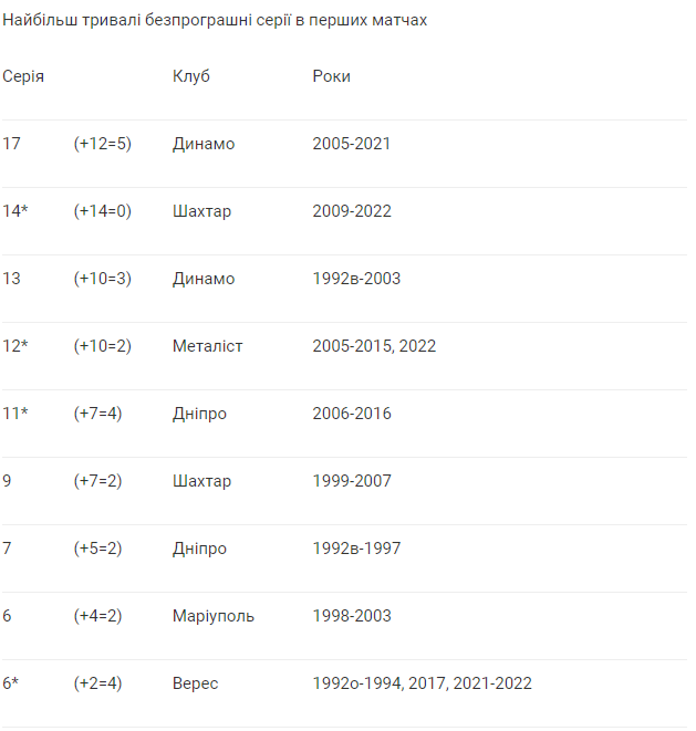 «Динамо», потерпев разгромное поражение от «Днепра-1» (0:3), прервало две свои рекордные серии в первых играх сезона: победную – с 8 матчей и беспроигрышную – с 17 (+15=2). В последний раз киевляне теряли очки в дебюте в 2013 году – 1:1 дома с «Волынью». А единственное до сих пор поражение на старте бело-синие потерпело в 2004-м, уступив на своем поле «Шахтеру» со счетом 0:2.