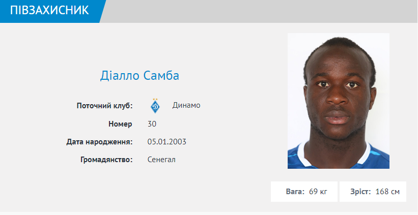 "Динамо" внесло в заявку на текущий сезон полузащитника Самбу Диалло. Сенегальский футболист заявлен за киевскую команду под 30-м номером.