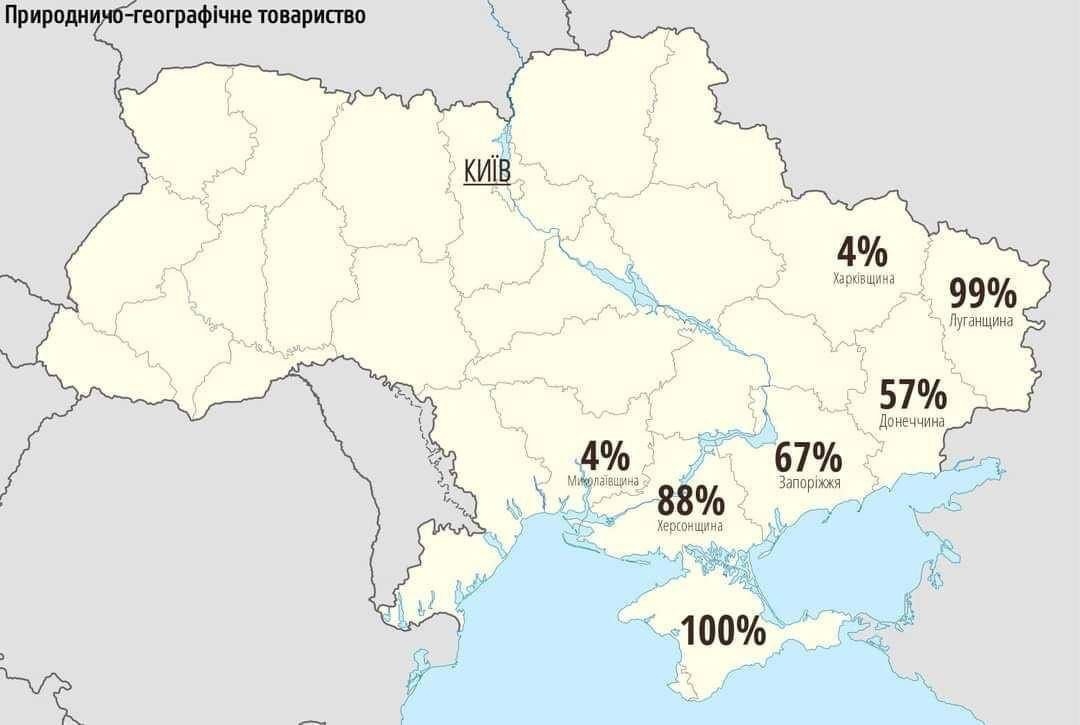 Данные по оккупированным регионам Украины в процентах.