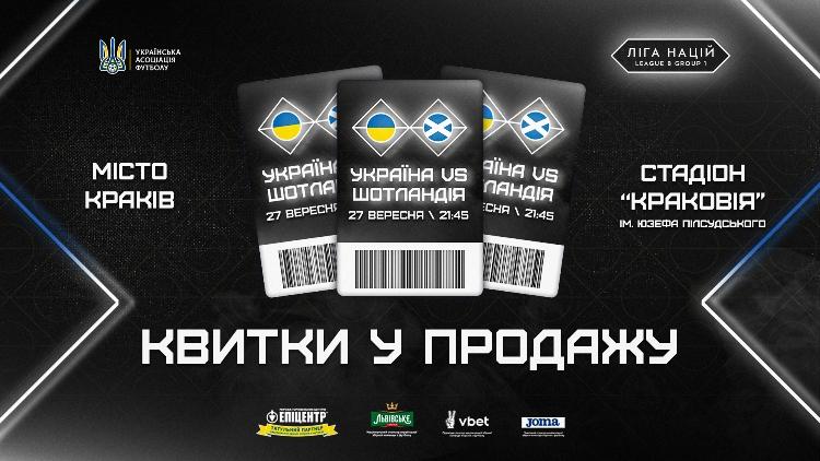 16 сентября стартовала продажа билетов на матч Лиги наций УЕФА-2022/2023 Украина – Шотландия, который состоится 27 сентября в городе Краков (Польша) на стадионе «Краковия» им. Юзефа Пилсудского (начало – в 21.45 по киевскому времени).