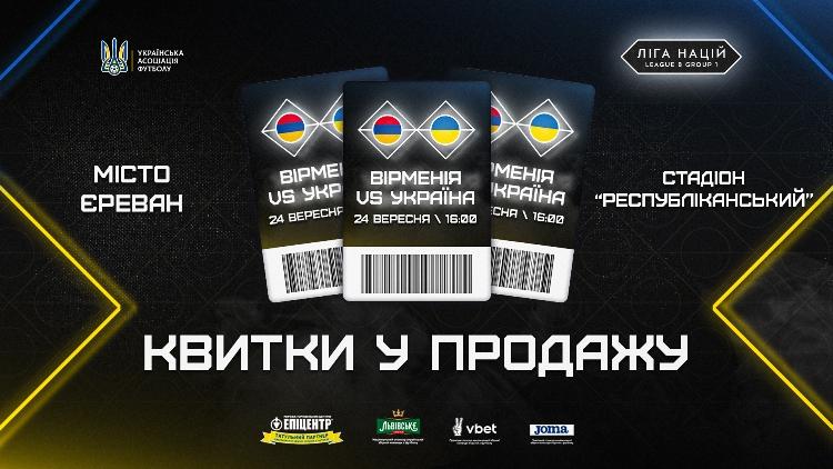 20 сентября стартовали продажи билетов на матч Лиги наций УЕФА сезона-2022/2023 между национальными сборными Украины и Армении, который состоится 24 сентября на стадионе «Республиканский» в Ереване и начнется в 17.00 по местному времени (в 16.00 по киевскому).