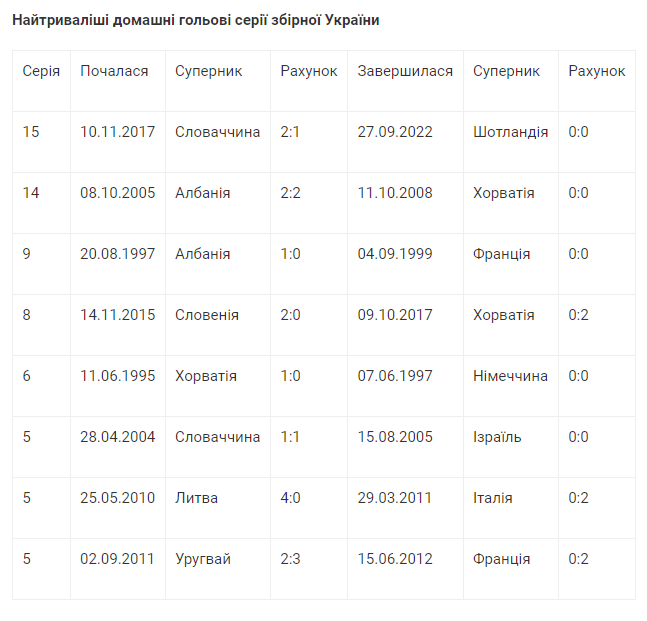 Сборная Украины, разойдясь по нулям с Шотландией, прервала свою рекордную домашнюю голевую серию, которая составила 22 игры. Последний раз наша команда не забивала гостям 9 октября 2017 года, когда на НСК «Олимпийский» уступила хорватам в поединке отборочного турнира чемпионата мира - 0:2.