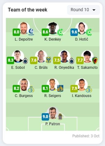 Украинский защитник "Брюгге" Эдуард Соболь попал в символическую сборную 10-го тура чемпионата Бельгии по версии SofaScore.