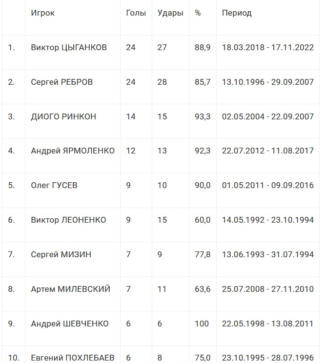 В матче с «Ингульцом» Виктор Цыганков забил 24-й мяч в чемпионатах Украины с пенальти, став тем самым новым рекордсменом «Динамо». Столько же раз в рядах киевлян поражал ворота соперников с «точки» и Сергей Ребров. Но Виктор показал свой результат из 27 ударов, а Сергей - из 28. К слову, больше, чем Цыганков, реализовал пенальти в УПЛ только Васил Гигиадзе - 27.
