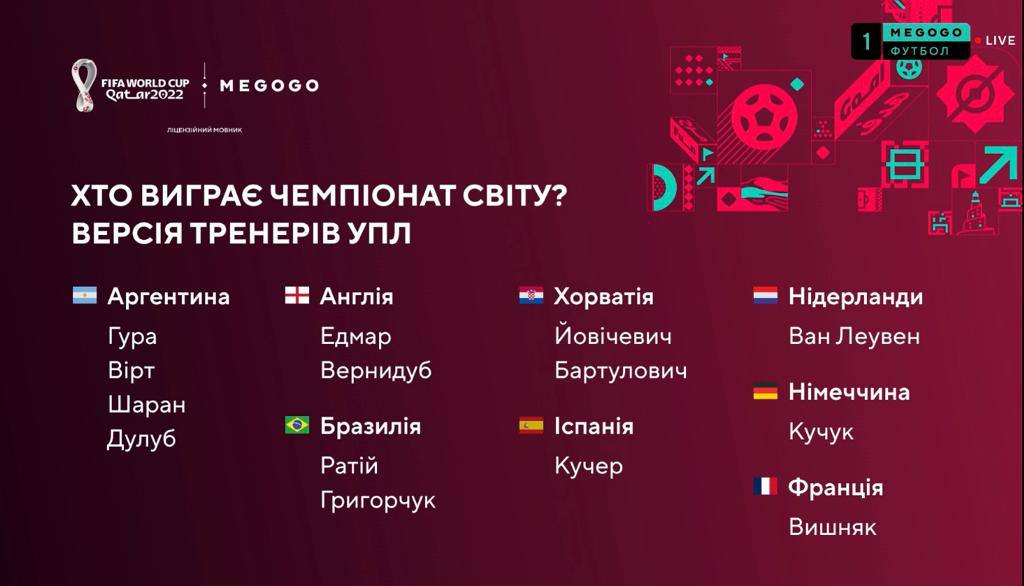 Наставники практически всех команд украинской Премьер-лиги назвали своих фаворитов чемпионата мира по футболу, который стартует сегодня в Катаре.