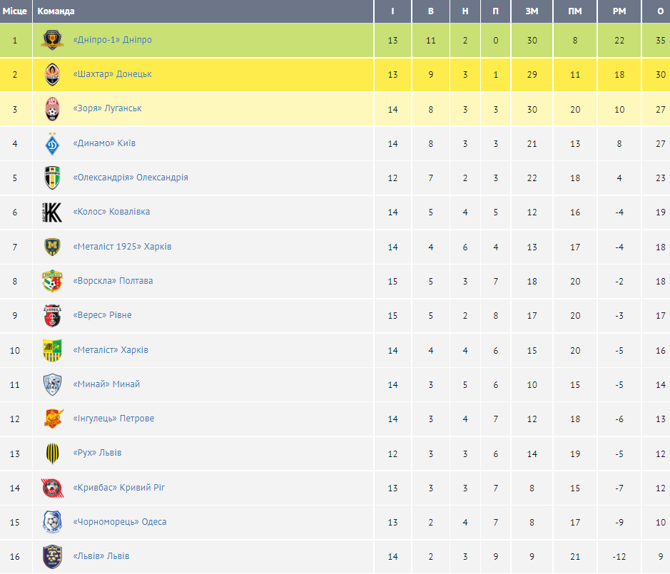 Отметим, что 15-й тур еще не подошел к завершению, ведь завтра состоятся матчи "Александрия" - "Рух" и "Кривбасс" - "Днепр-1".