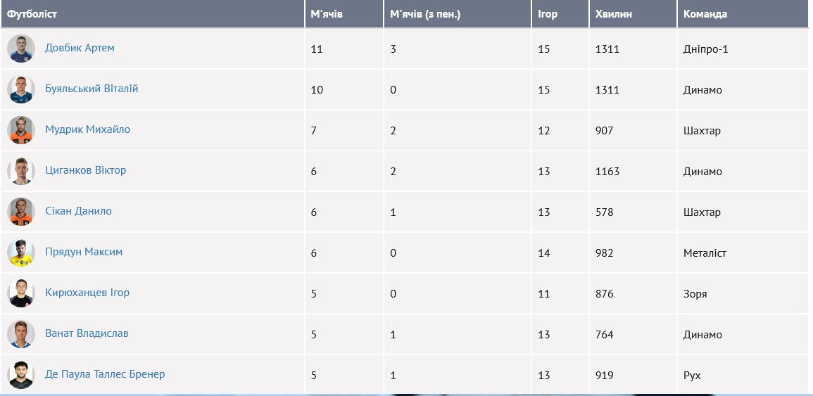 Сразу трое динамовцев попали в топ-10 лучших бомбардиров текущего сезона Премьер-лиги с уходом команд на зимний перерыв.