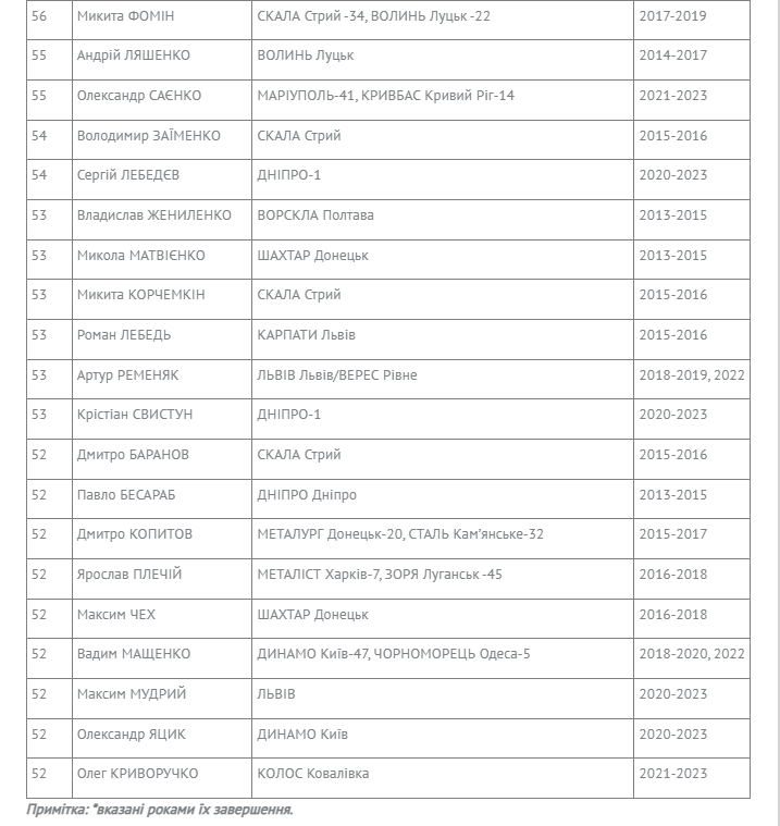 Начиная с 2012 года, за все время проведения Чемпионатов Украины среди игроков до 19-ти лет (U-19) в этих соревнованиях было задействовано уже 3067 футболистов из 32-х клубов