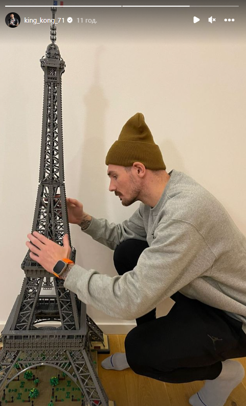 Вратарь "Динамо" Денис Бойко в своем Инстаграмме похвастался, что собрал большую Эйфелеву башню из конструктора.