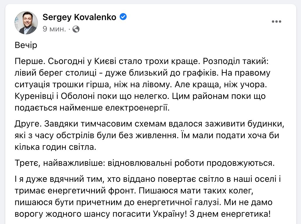 Стало немного лучше. В Yasno рассказали о ситуации со светом в Киеве