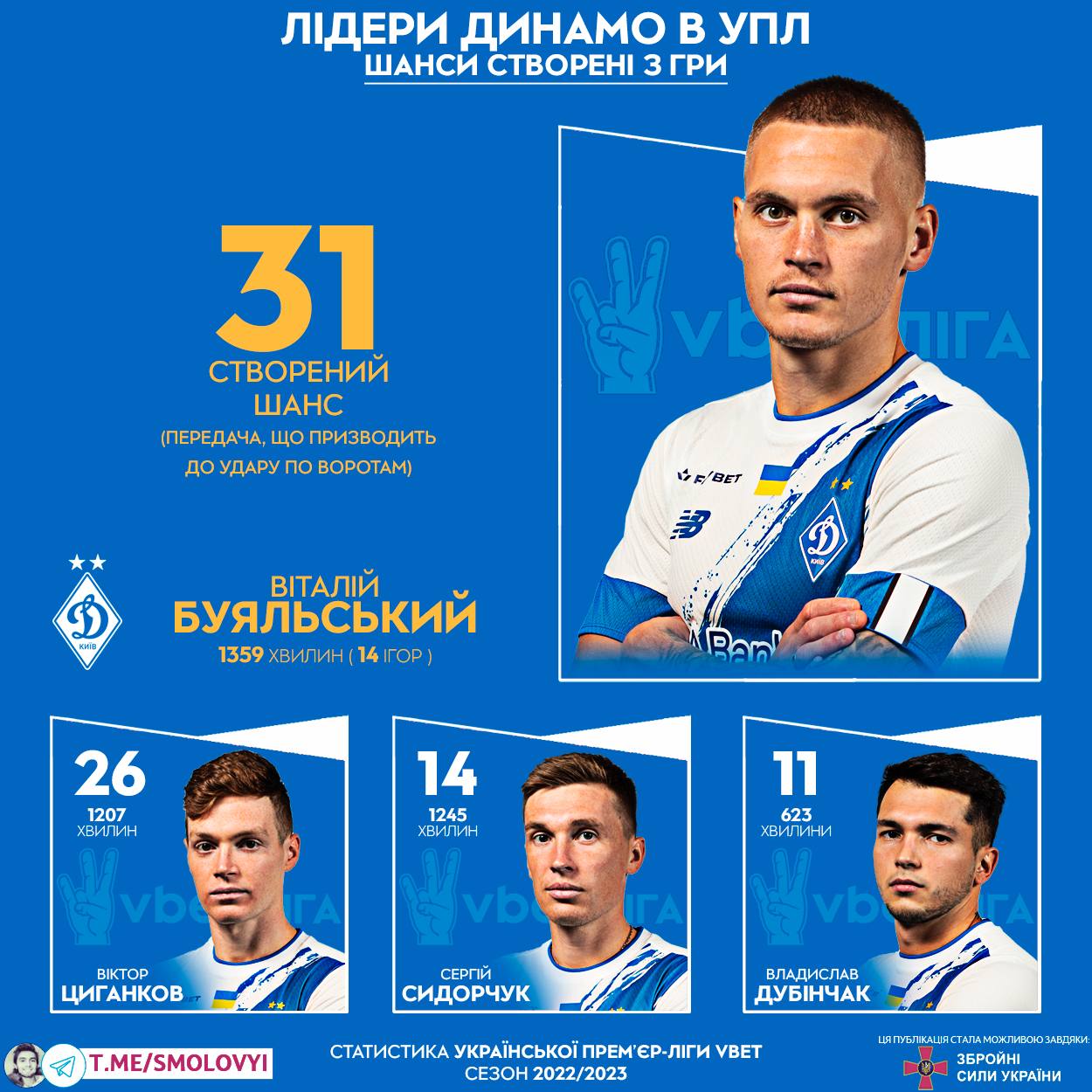 Блогер Михайло Смоловий у своєму Телеграм-каналі розповідає про лідерів "Динамо" зі створених шансів з гри у Прем'єр-лізі.