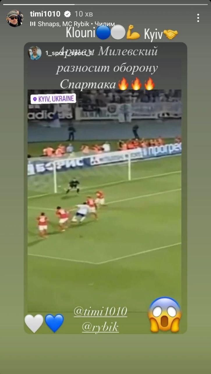 Артем Милевский опубликовал видео унижения Спартака в плей-офф ЛЧ, когда "бело-синие" разгромили московский клуб на его стадионе со счетом 4:1, а через две недели повторили бомбардировку "гостей из провинции" в "столице Киевской Руси" (4:1). В обоих поединках Милевский отметился дублями. Алиев открыл счет в домашнем матче.