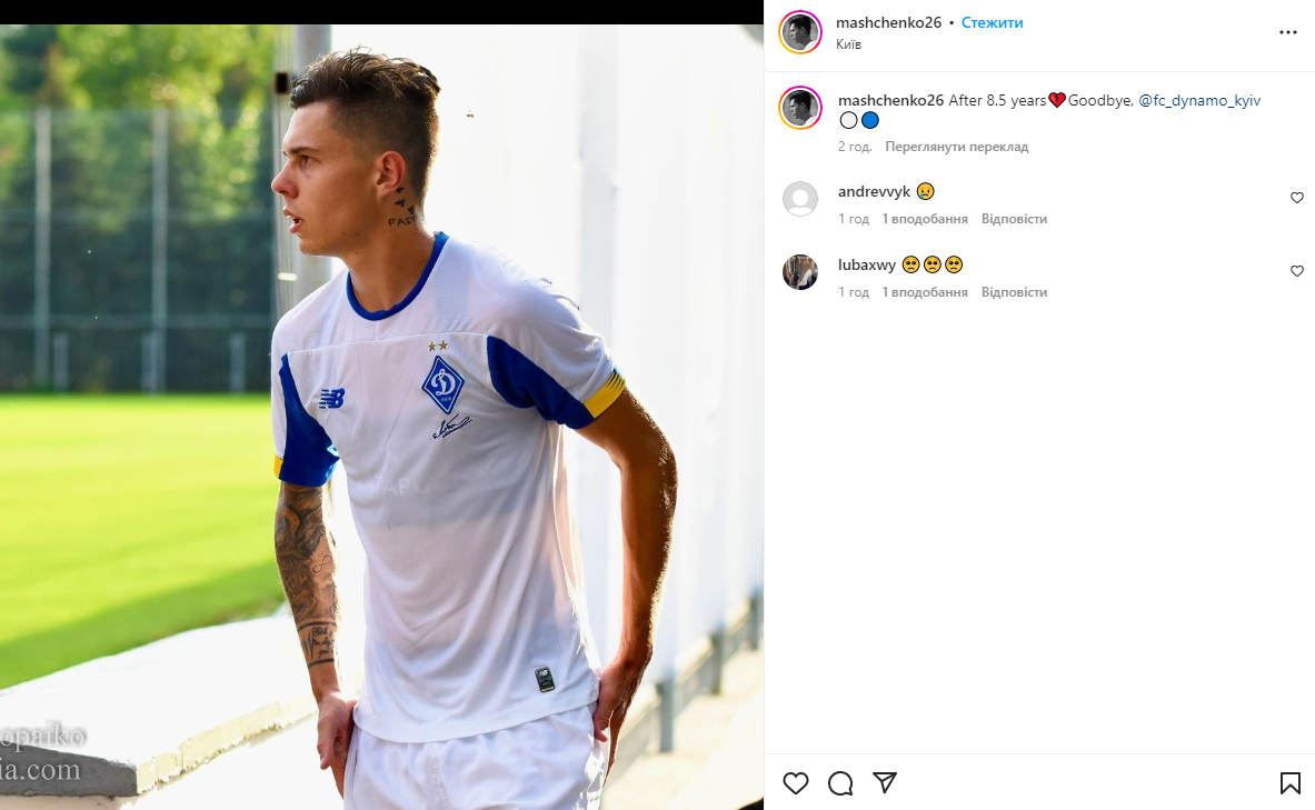 Бывший полузащитник "Динамо" Вадим Мащенко в своем Instagram попрощался с киевским клубом, который он покинул еще ранее.