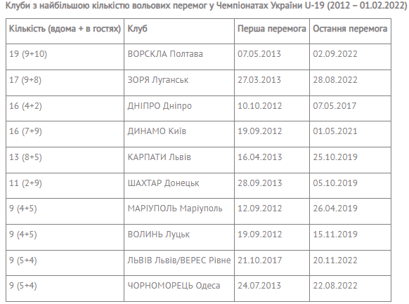 В целом с 2012 года, когда стартовали соревнования юношей, уже 207 волевых побед: 108 раз меняли ход поединка в свою пользу гости и 99 – хозяева поля. Автором же юбилейной, 200-й (!), волевой победы в юношеских Чемпионатах стала «Ворскла», которая 24 августа 2022 года в статусе гостей хоть первой и пропустила гол, но вырвала победу над «Зарей» со счетом 2:1.