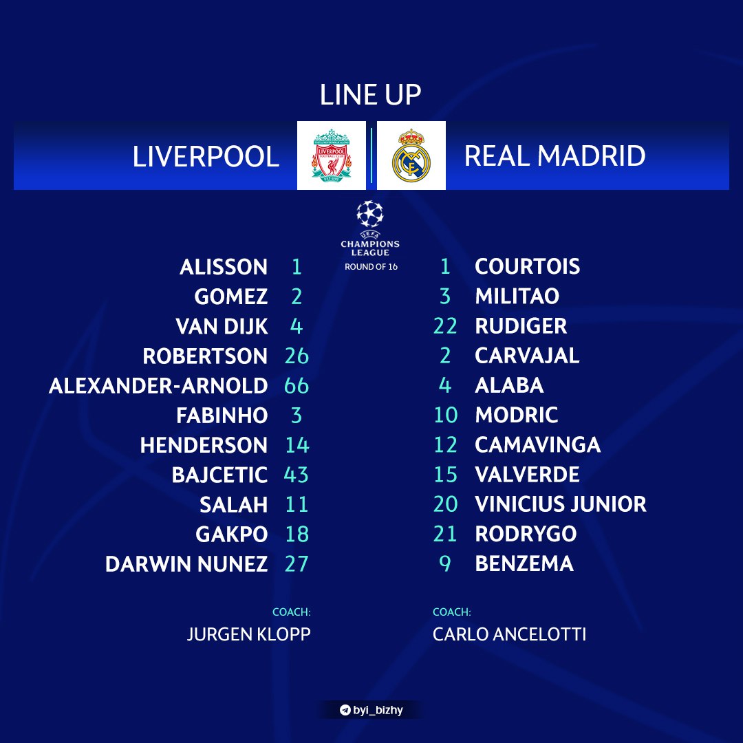 Лунин – в запасе. Стали известны стартовые составы на матч Лиги чемпионов "Ливерпуль" – "Реал"